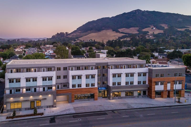 The Academy Chorro presents 27 luxurious off-campus student housing units with amenity spaces on the ground floor, and roof deck having extensive views of Bishop Peaks. The architecture celebrates modern forms by carefully selecting an exterior material such as IPE hardwood rain-screen, modern metal siding and stucco with integral color.