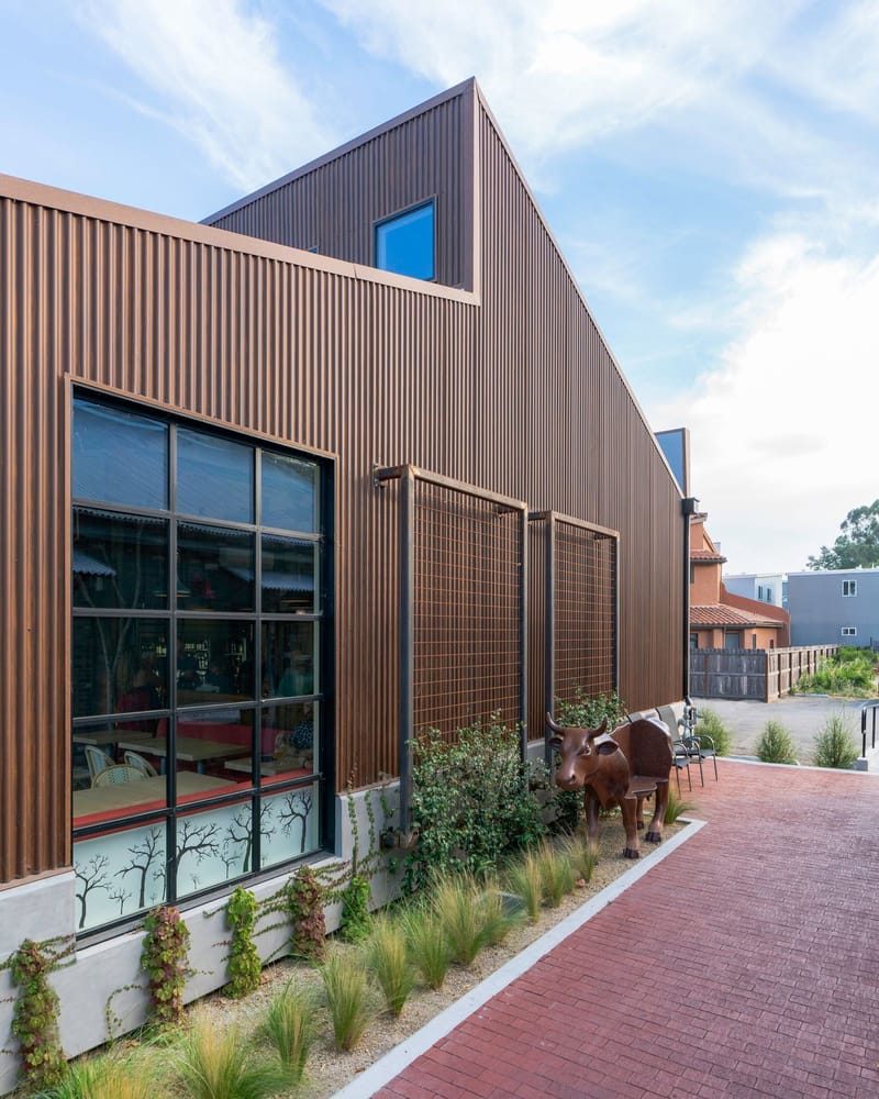 Located at the historic Golden State Creamery site, the Creamery Marketplace reimagines a downtown landmark for future generations. Drawing from the original group of buildings, updated facades, pedestrian spaces, and covered walkways reinforce a cohesive creamery identity while improving connectivity throughout the site.